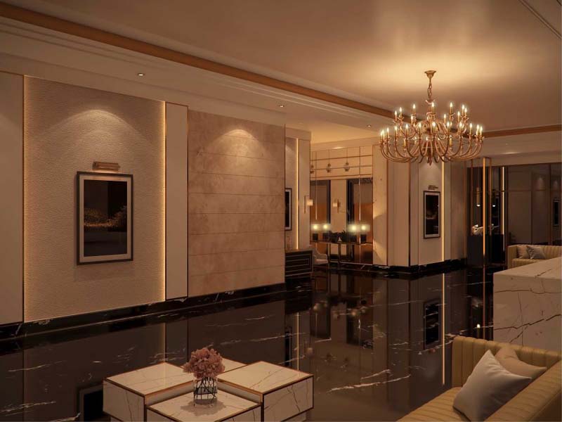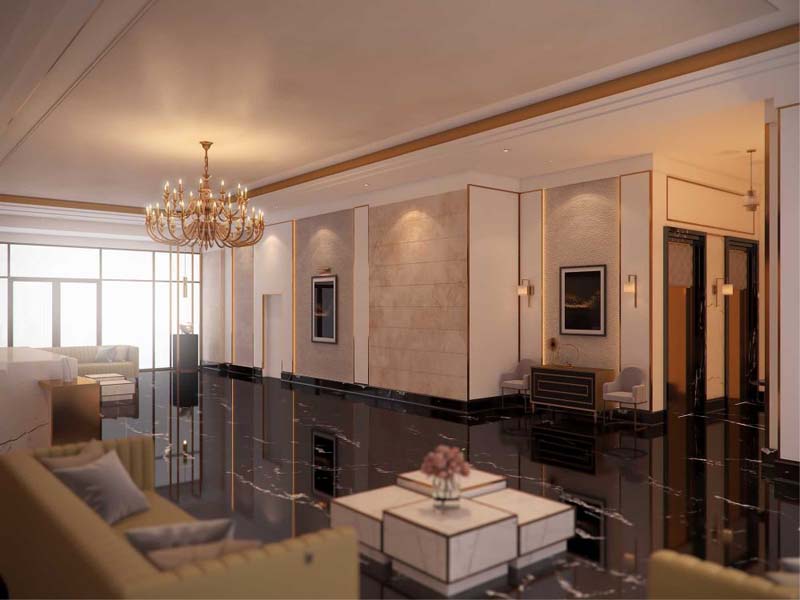 - دیزاین یکپارچه و مناسب که تا فضای راه پله و آسانسور هم ادامه پیدا کنه